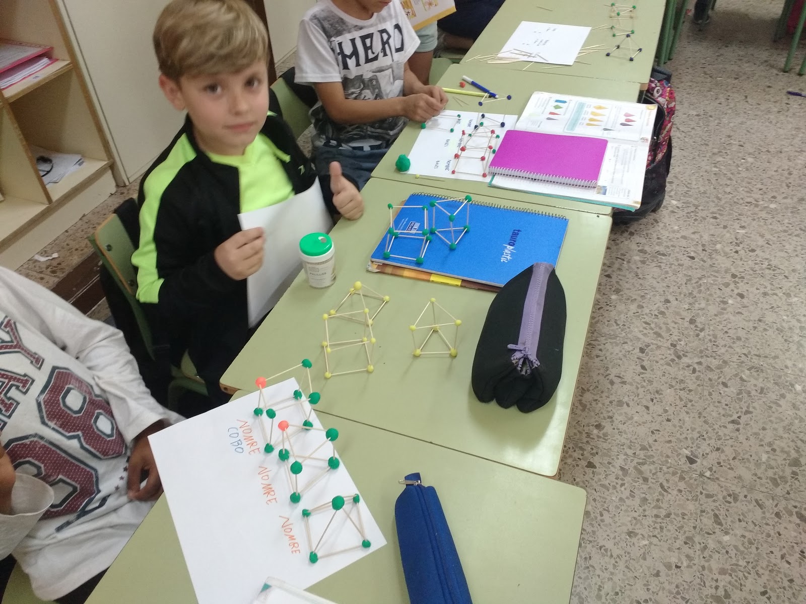 Los alumnos de quinto y sexto han trabajado con ayuda de palillos y plastilina los cuerpos geométricos