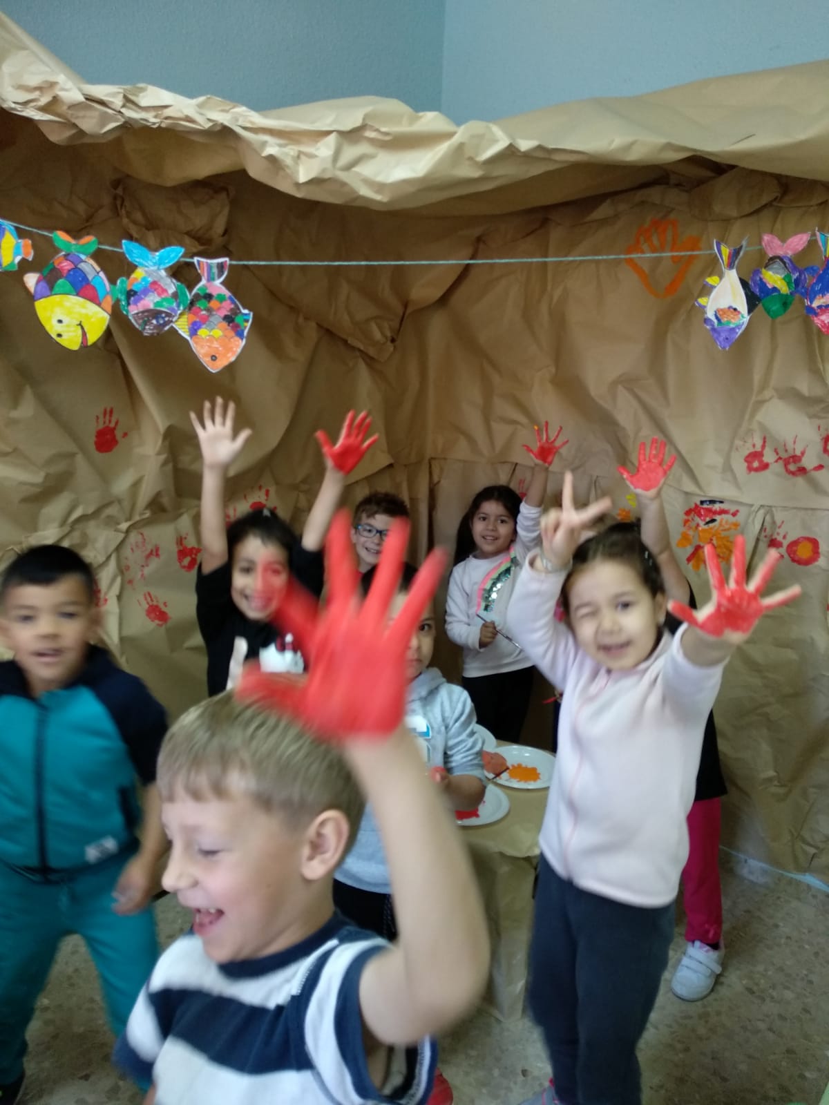Nuestros alumnos de infantil han experimentado con sus propias manos cómo se pintaba en las cuevas prehistóricas